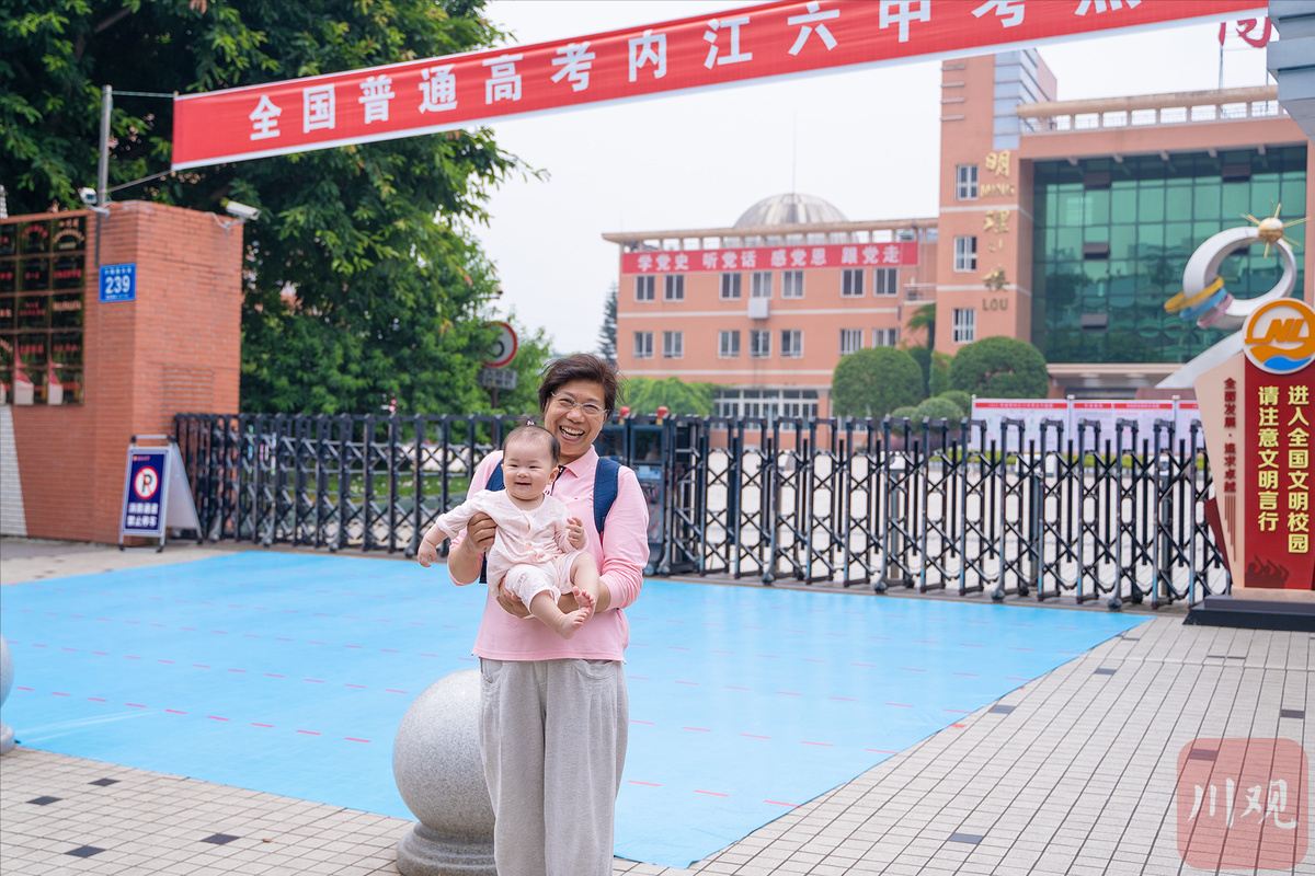 上午11时许,高考首门科目语文考试即将结束,内江六中考场门口聚集了越来越多的家长。在内江六中考点外,不少参加高考的考生在心愿墙上,留下了对自己的祝福。其中,一位带着婴儿的阿姨站在心愿墙旁。这位周姓阿姨告诉川观新闻记者,今天是带自己半岁的孙女来“体验”高考。“我带着孙女过来看看,女儿以前就是六中的学生,现在已经成为一名教师了。今天女儿也在这里看高考,我和她们母女两人一起重返六中,一起感受和回忆高考。”周女士表示。