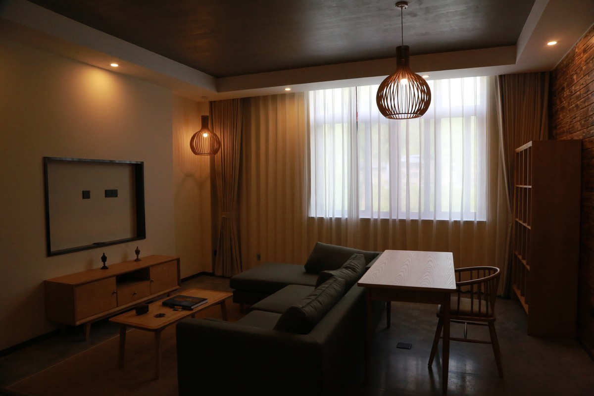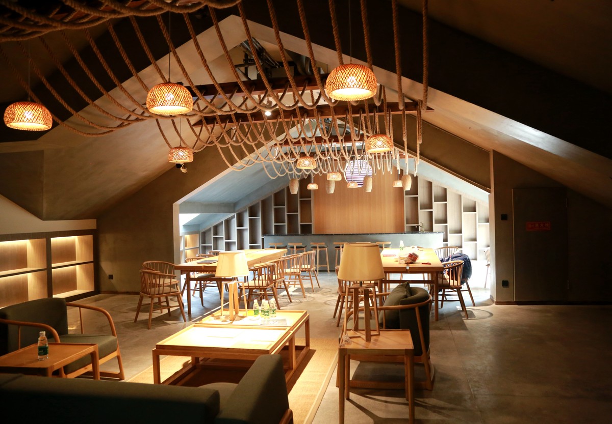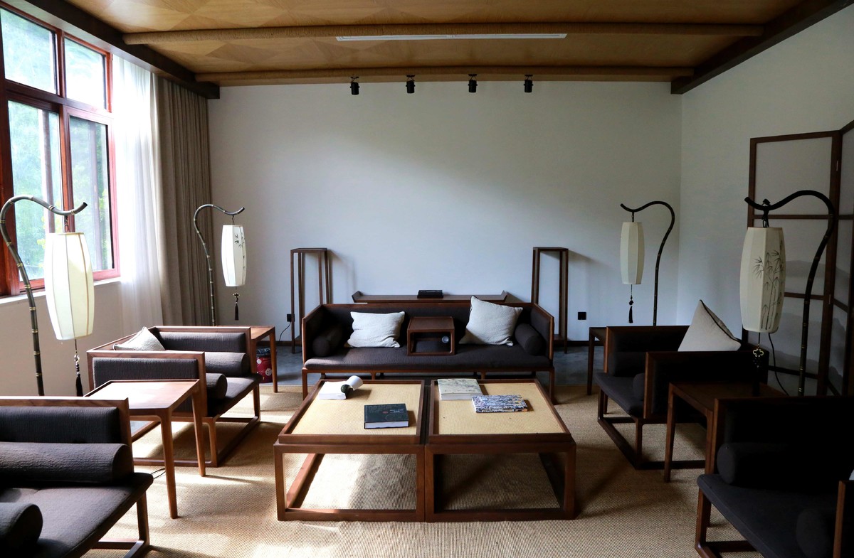 既然作为乡村创客营地,花田间向家院子的内部设计和空间布局充满了浓厚的人文内涵和艺术格调。一楼由花田喜食、花田物语、花田美术馆、花田工坊和生活记忆馆等馆室构成,沙发、茶几、吊灯、地板、桌椅等家居陈设都非常别致,摆设十分讲究;二楼有十二个房间,分别以中国传统的十二花神命名,如“疏梅寒香”“杏花天慢”“灼灼花桃”“牡丹和露”等,每个房间的物品陈设各有特色,显得别致典雅;三楼是一个静谧的舒适阁楼,用于研学修习的空间为“向上书堂”,用于休息生活的空间为“六艺书舍”,包括礼舍、乐舍、射舍、御舍、诗舍、书舍和道舍等七间书舍,表达了一种“六艺问道”的精神追求。