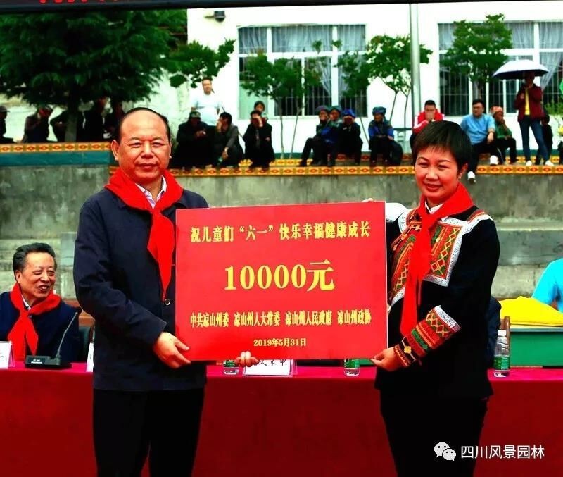 (凉山州州委、人大、政府、政协向学校捐赠1万元慰问金)