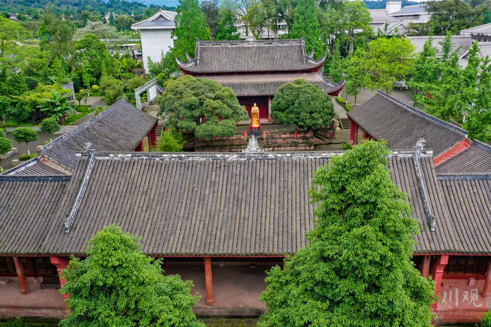如今,在雅安市名山区月华山上,名山文庙在名山中学校园内。沿着名山中学的台阶而上,一眼可以见到文庙的古建筑,庙内古木参天,绿树成荫,庙外的校园古朴雅致,书声琅琅。学在庙中,庙中有学,名山文庙是全国现存少有的庙校合一的建筑群。