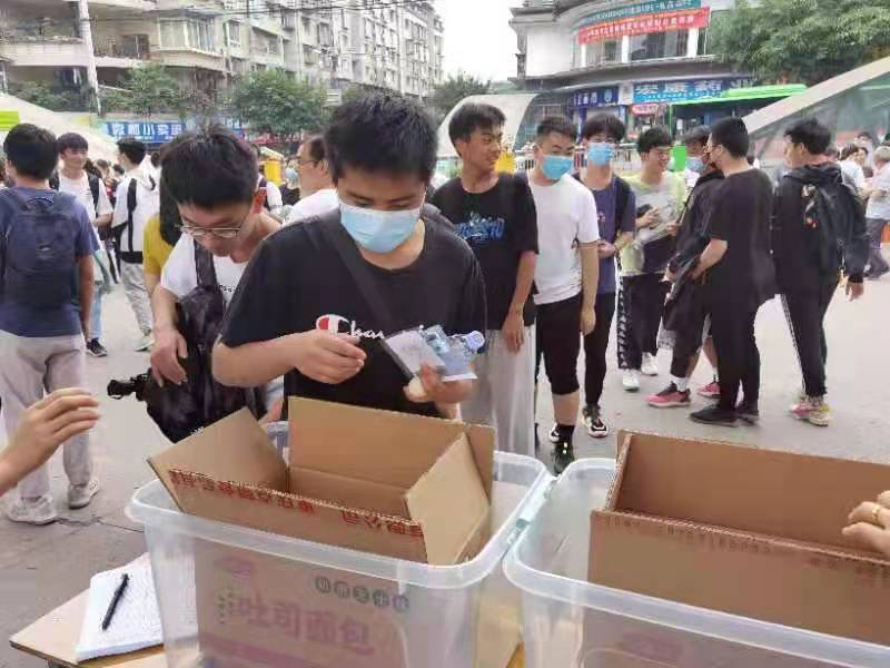 “考生只需做好相关登记,出示准考证后均可在这里免费领取面包、鸡蛋等营养早餐。”资中县第二中学教师表示,高考爱心早餐是今年该校为高考学子传递高考信心和力量的一个新方法,老师们在考试之前买好面包和鸡蛋,为个别没来得及吃早饭的同学免费提供早餐。