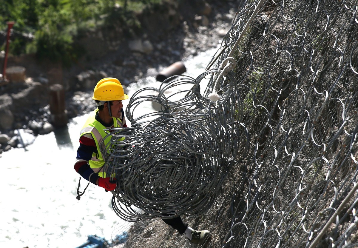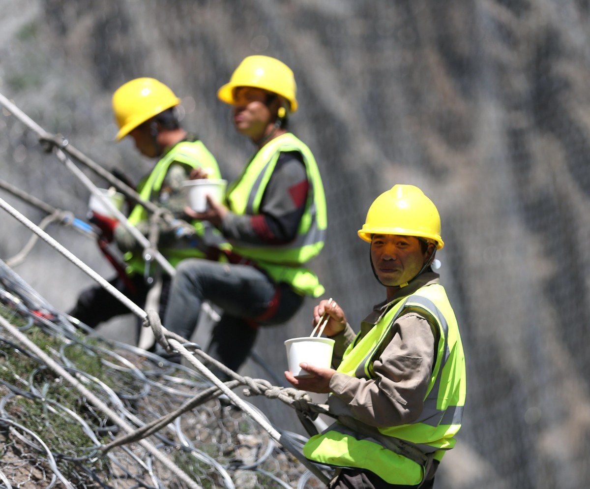 施工面临的另一大挑战是天气,负责该项目施工和安全管理的李明全介绍,当地上午暴晒、下午大风,工人们作业都要“全副武装”。此外,峡谷内的昼夜温差可达近20度,白天烈日暴晒后,岩层温度高达近50度,夜晚气温迅速下降,冷热交替下使得岩石“伤痕累累”,更易开裂形成落石,为施工带来更多风险。