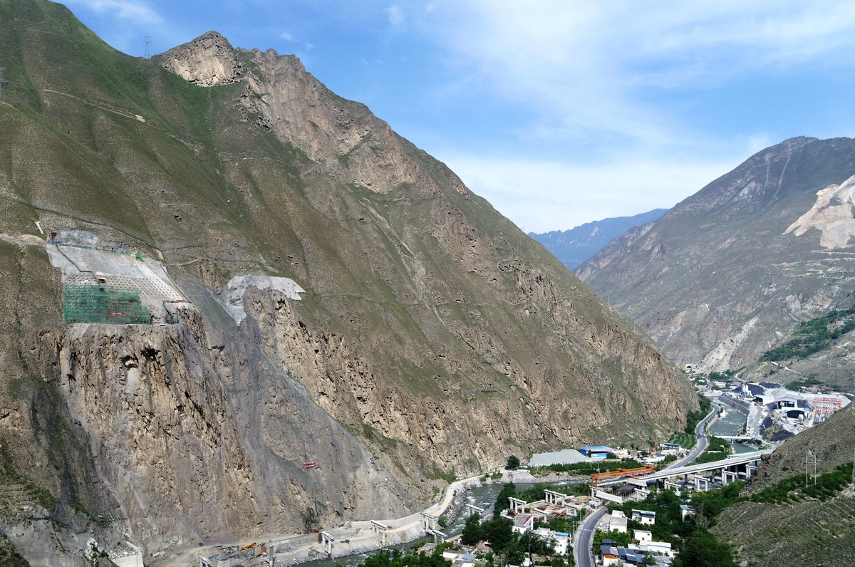 困难还来自山体给施工带来的巨大挑战。“我干过很多项目,像这样艰难的项目还真是第一次见!”付曾介绍,项目位于地壳活跃范围内,必须开展定期位移监测。由于边坡超高,施工作业面垂直落差近200米,行业内极为罕见,项目部耗时半年才在陡壁的半山腰处凿出一条长约800米的施工便道,靠着车拉、马驮、人背的方式,才把材料运到指定地点。