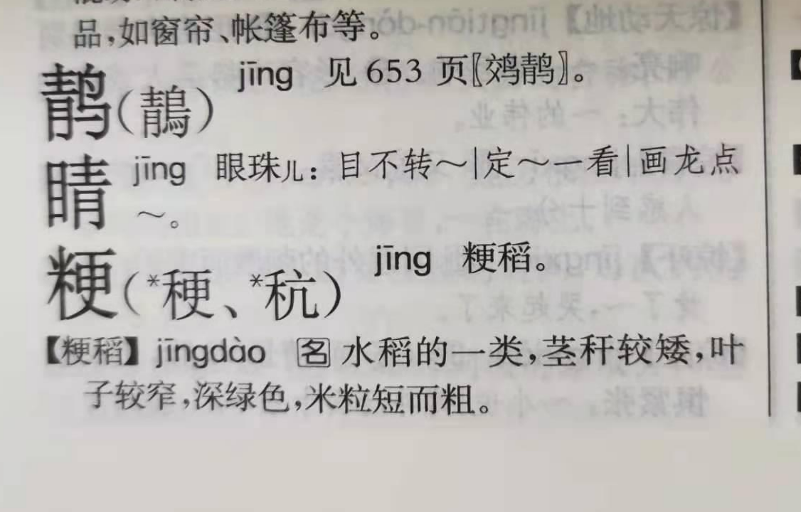 2019年,最新的《普通话异读字审音表》已经结束征求意见,尽管成果没有体现在最新版《新华字典》和《现代汉语词典》里,但相信不久的未来,在第12版《新华字典》和第8版《现代汉语词典》中,粳的读音将被改成gēng。