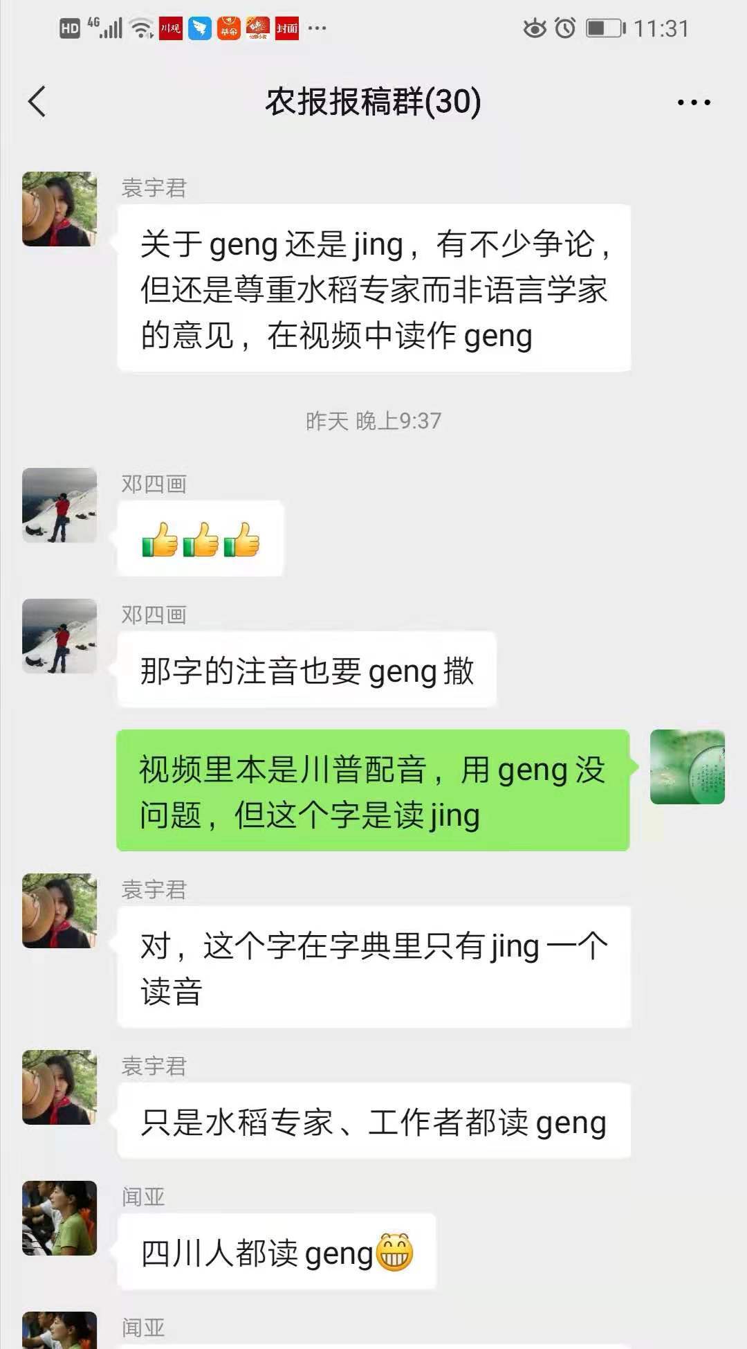 川农大、省农科院数位水稻专家均表示该字读geng。