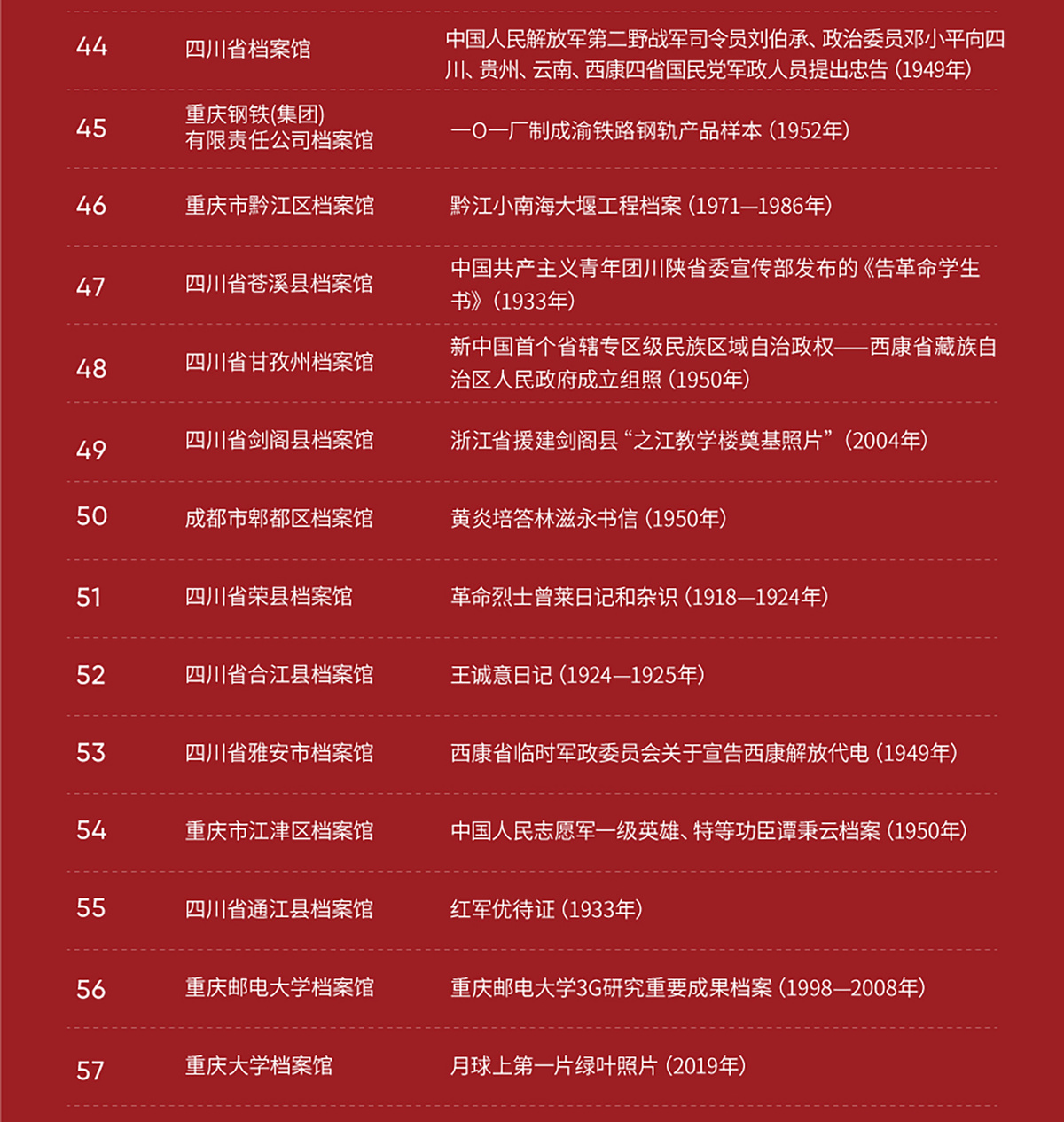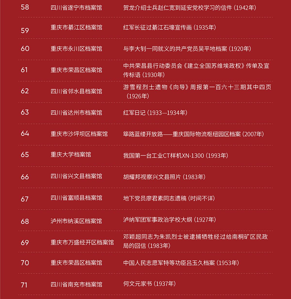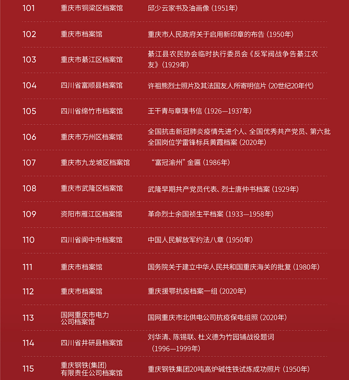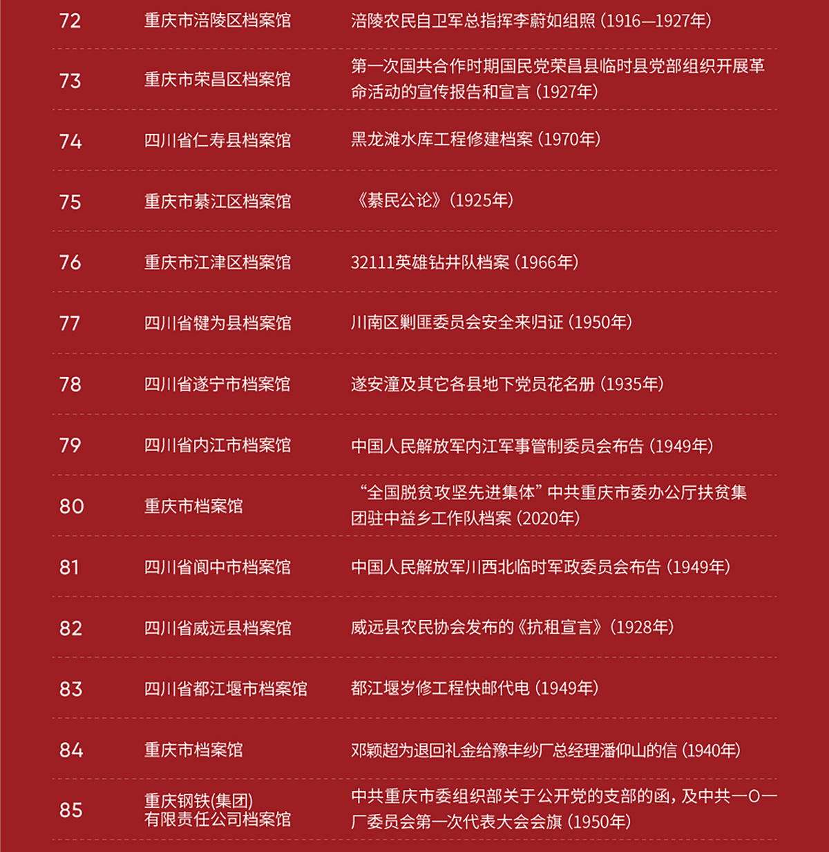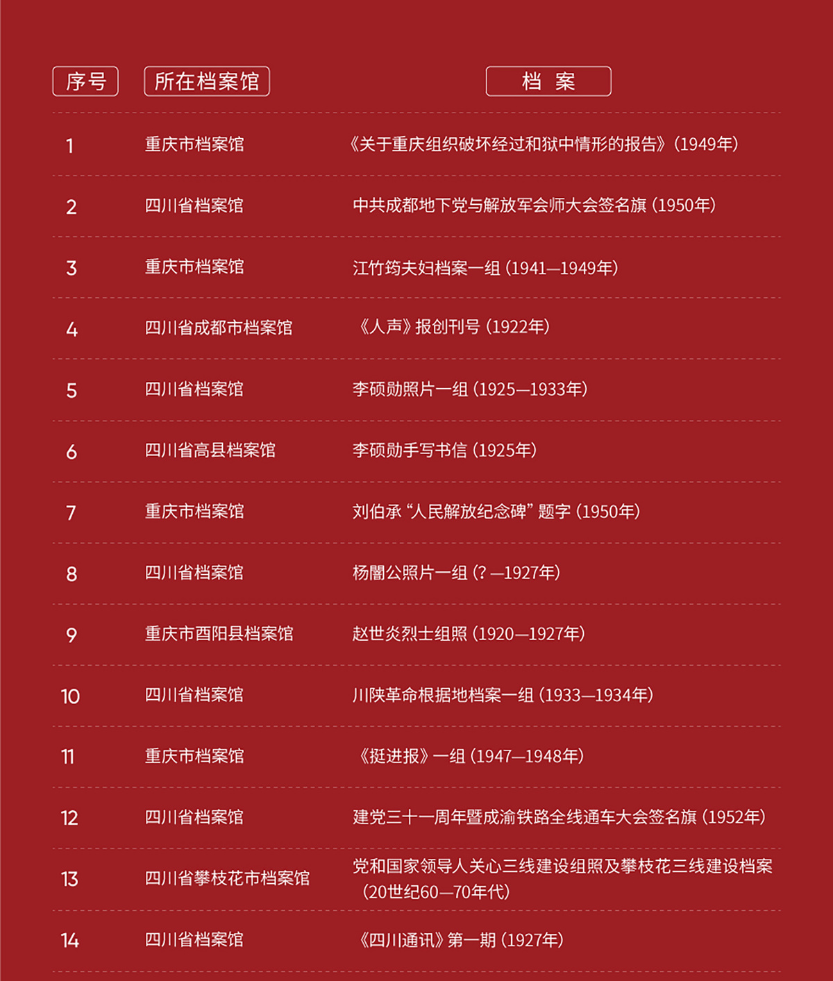 为庆祝中国共产党成立100周年,用档案讲好党的故事,全力服务建党百年庆祝活动和“四史”教育,四川省档案馆和重庆市档案馆首次跨区域联合评选红色珍档。
