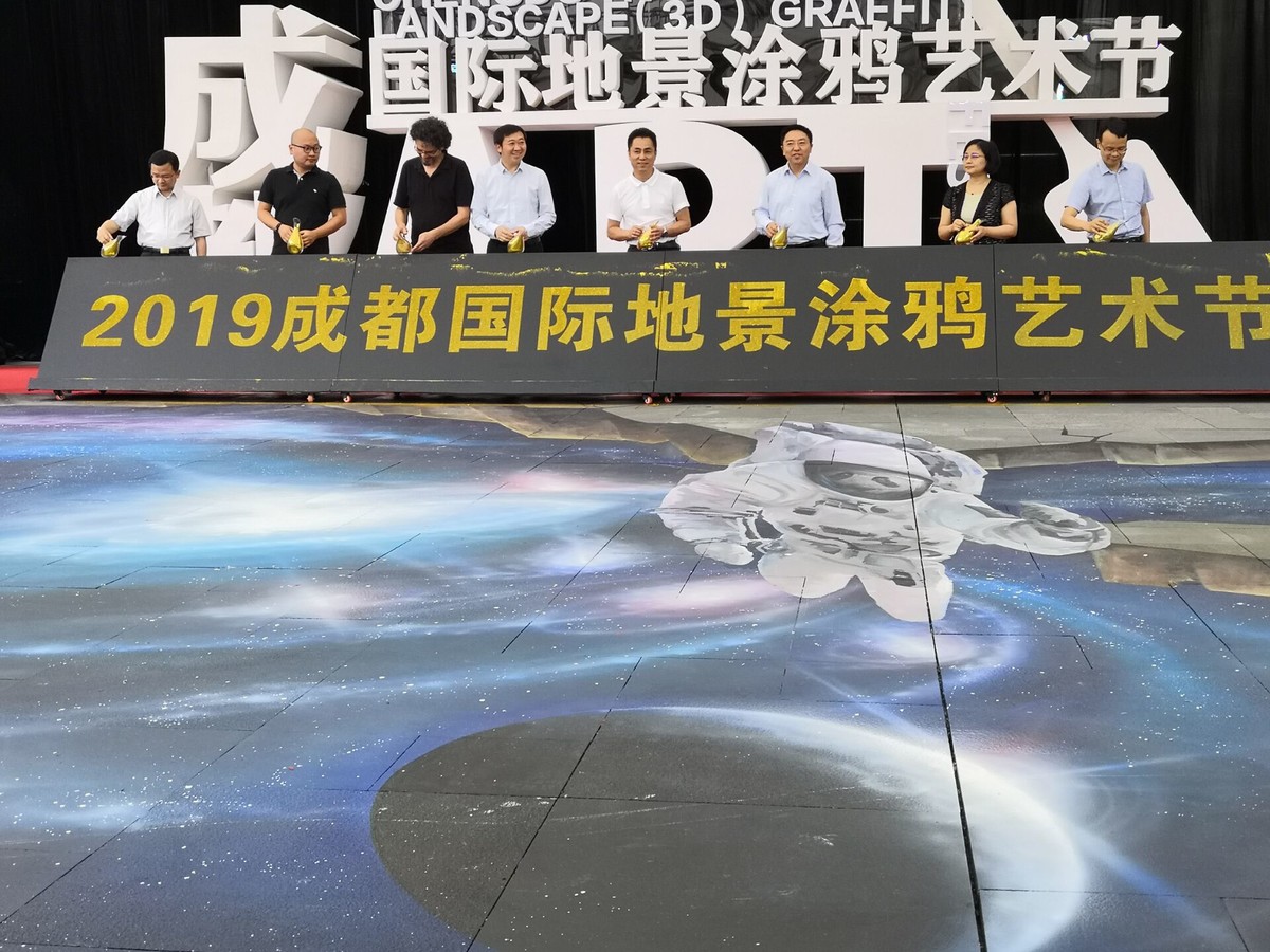 6月18日上午9时,成都市太古里地铁广场,2019成都国际地景涂鸦艺术节正式揭幕。揭幕式上,来自中国、韩国、泰国、厄瓜多尔的9名国内外知名艺术家现场涂鸦创作,在众多游客和市民见证下正式开启。