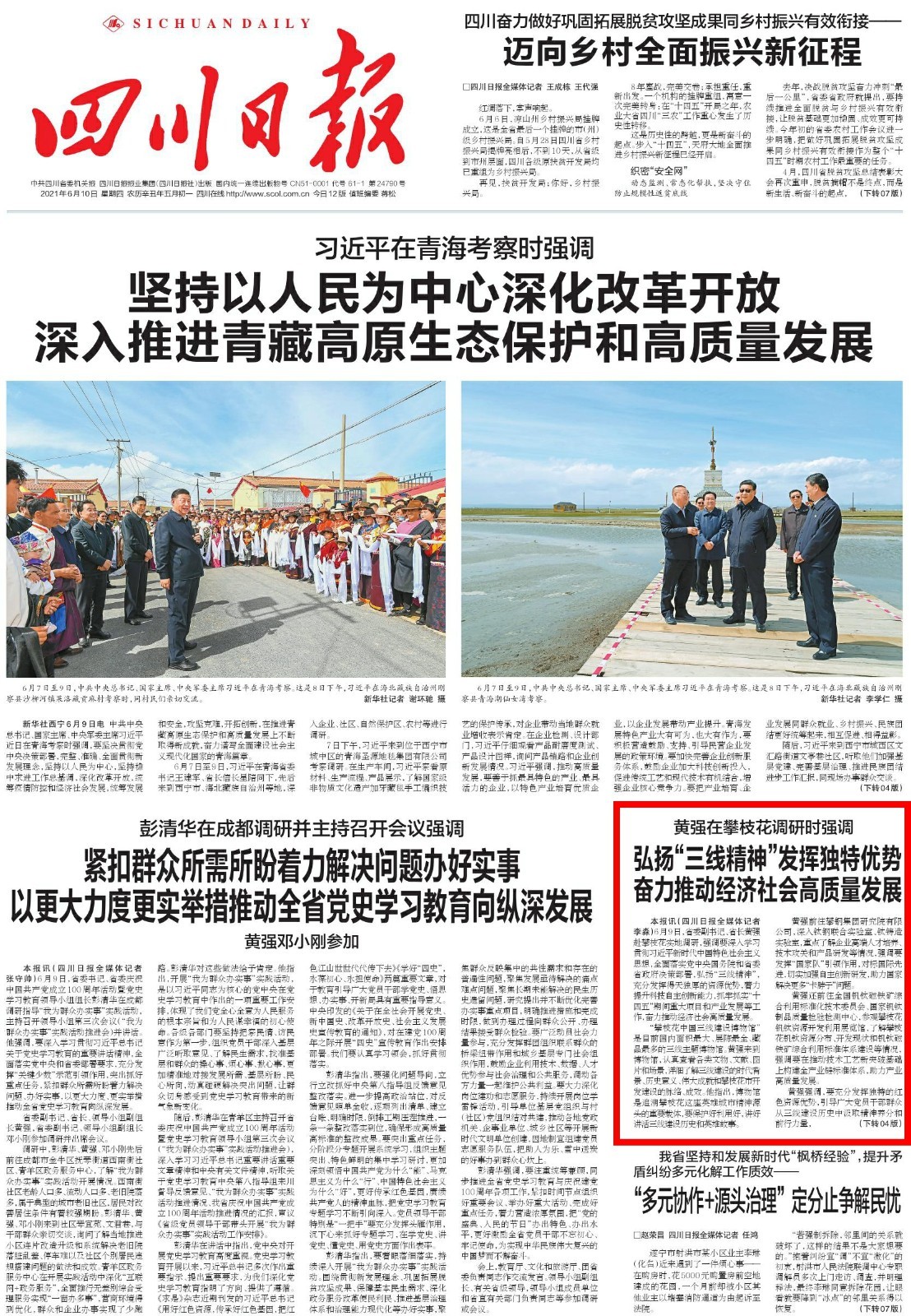 《四川日报》2021年6月10日 头版