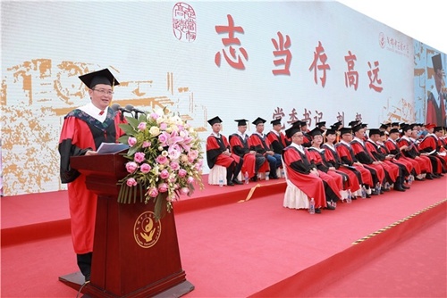 同学们,从古至今,人类都身处历史的洪流之中,时间的车轮一直向前从未止息,我们每个人的生命也在绵延不绝向前而行。如何过这一生?如何过好这一生?这是永恒的话题。但从今天起,你们走出校门,踏入社会,无论你们是曲肱而枕,又或是栉风沐雨,都希望你们能立鸿鹄之志,守仁人之心,承经典之学,秉苍生之本,不忘初心,牢记使命,拥有一个丰满充实、强大无悔的人生!