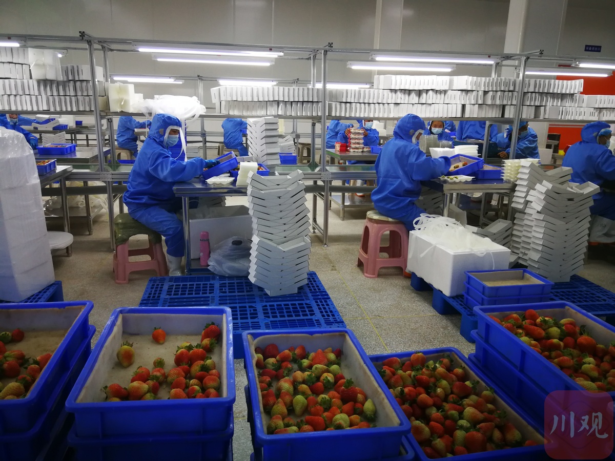 而对于不能及时鲜销的草莓,公司则配套建设了一个年产能3万吨的冷链加工中心进行速冻等初加工。