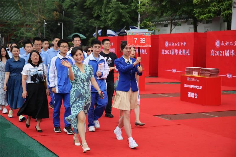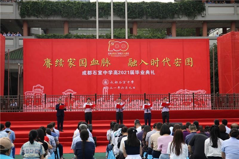 6月9日,石室中学文庙校区为即将展翅高飞的高2021届同学们举行毕业典礼。石室中学校长田间同志、党委书记李贤中同志、学校全体行政干部、执教高2021届的老师们、竞赛教练、物业后勤服务人员代表和家长朋友们出席仪式,为同学们迈向人生新旅程而共同庆祝。