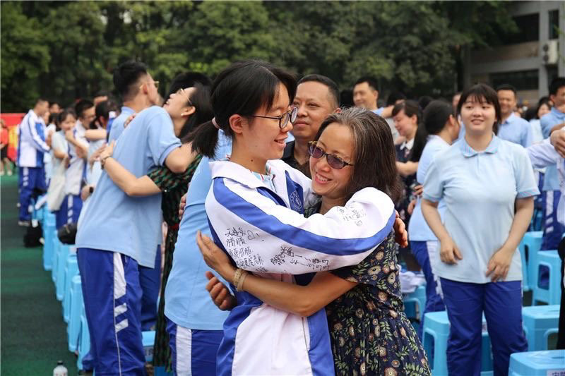 感恩石室,青春在最美好的时节遇到最真诚的臂膀。学校领导、老师守候毕业生入场。
