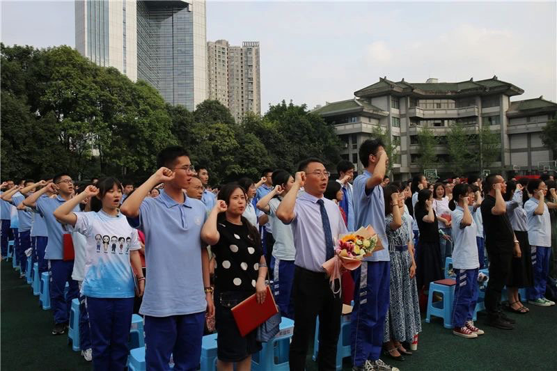 典礼最后,全体再一次唱响校歌,用最高亢的声音去呼喊出情感的交集;再一次嘹亮呼号,在未来的每一次成长中,迸发石室力量!