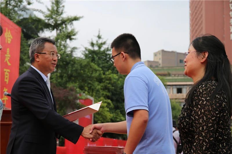 毕业生们从校领导手中接过毕业纪念证,从此,青春之光照亮未来!