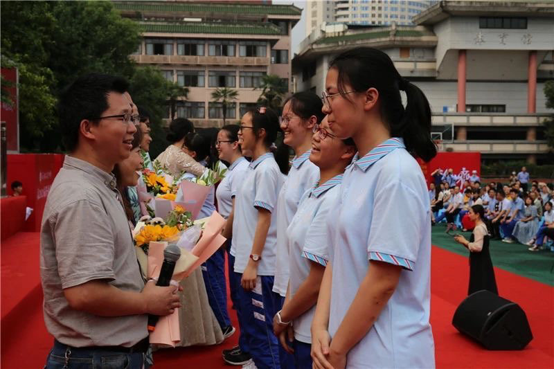 三年里,我们拼搏,成长,向完美进发,收获了永世难忘的师生之情。毕业生们用最热烈的掌声,欢迎老师们登台,接受鲜花和最诚挚的感谢。