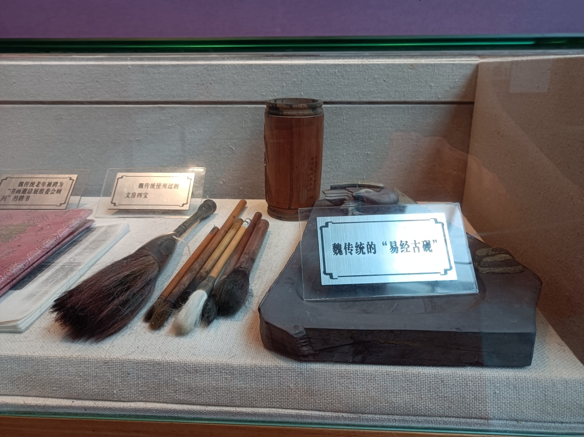魏传统家不富裕,其父魏龙德是当地的私塾老师,他从小就跟着父亲读书写字,练得一手好书。据传,魏传统10多岁时,周围的人家都会来找他写对联、家信、契约等。在陈列馆中,展陈着魏传统曾经使用过的笔墨纸砚和书法作品,这位曾留下大量书法作品的军事艺术家,用笔墨彰显革命风骨。