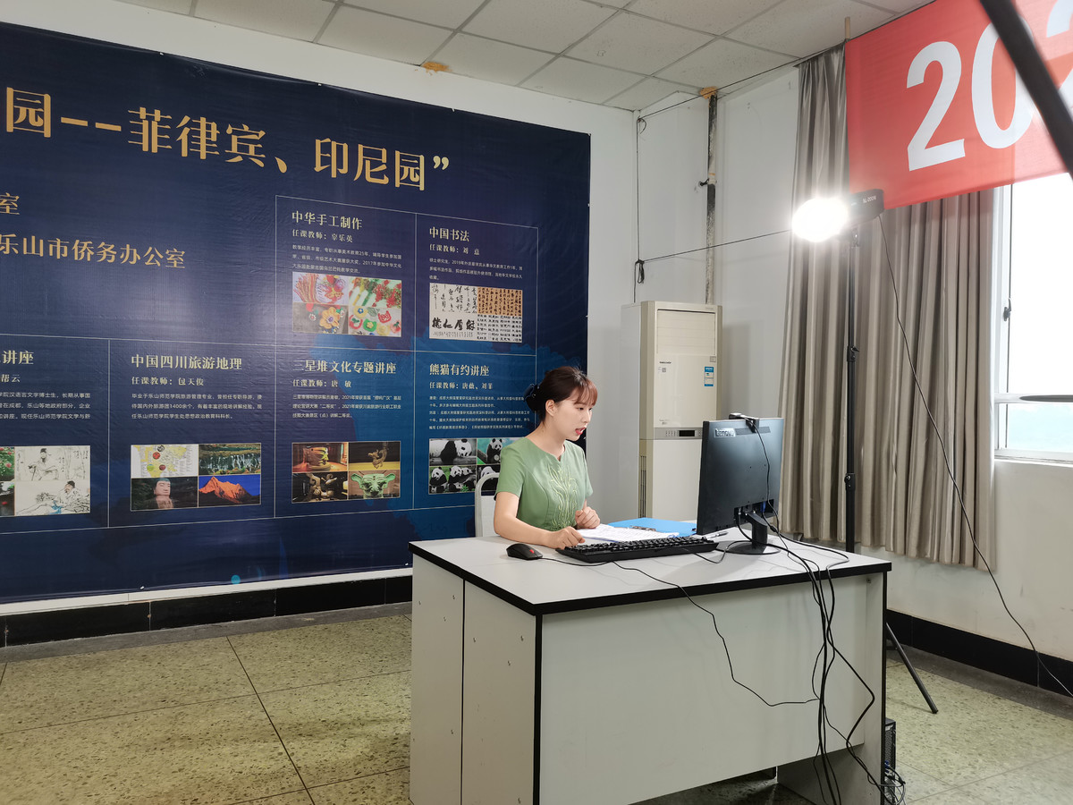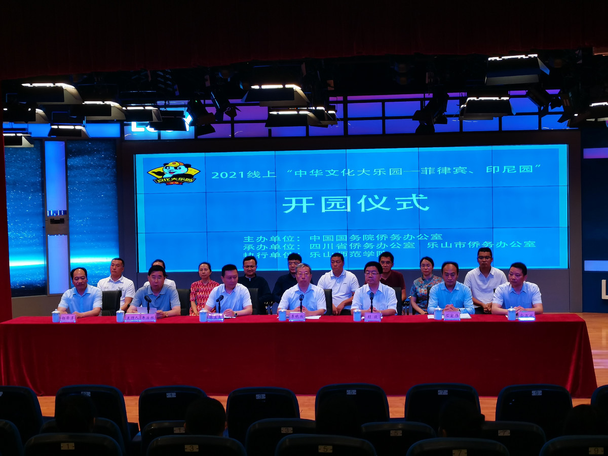 6月11日,2021“线上中华文化大乐园——菲律宾、印度尼西亚园”开园仪式在乐山师范学院举行,相关部门负责人以及12名授课教师现场出席活动,菲律宾园的70名学员和辅导老师、印度尼西亚园的400名学员和辅导老师则在线参加开园仪式。