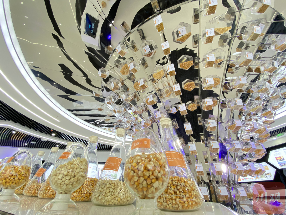 而科技馆的尽头,就是一棵“生命之树”,里面搜集了185种不同品种的玉米种子。这些种子均由省农科院提供。在现场,还有互动体验式平台,参观者如果对某颗种子感兴趣就可以按对应的键,随之便会显示它的名称、产量、如何生长培育的过程。