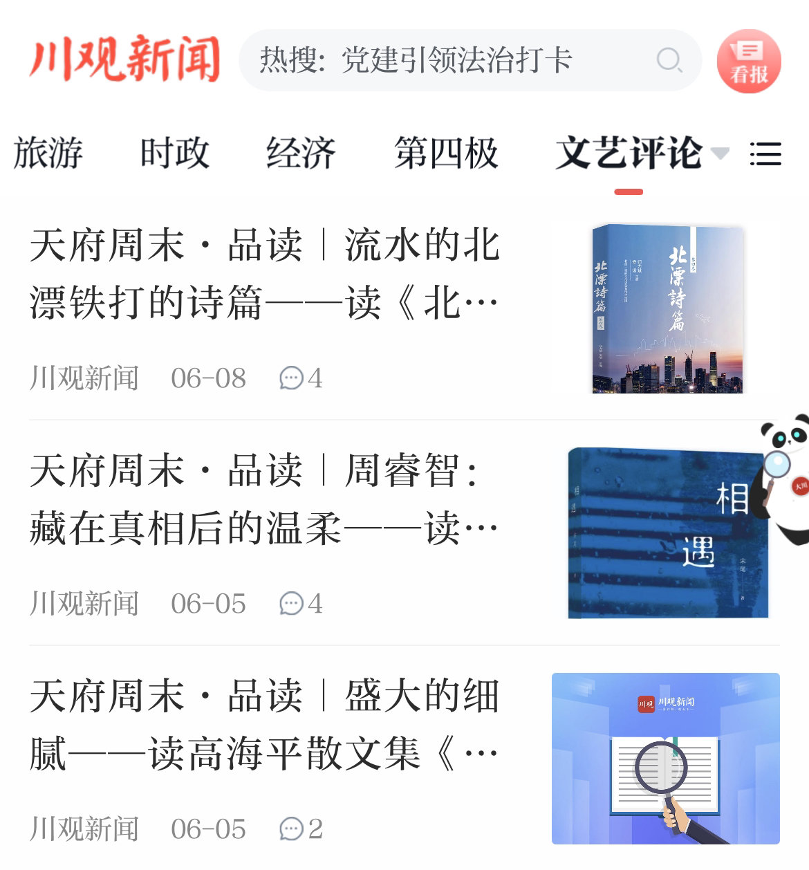 6月11日,全国省级党报首个文艺评论线上频道——川观新闻“文艺评论”频道正式上线。即日起,读者可通过点击川观新闻APP上方频道栏右侧标志,在“我的频道”页面订阅“文艺评论”频道。