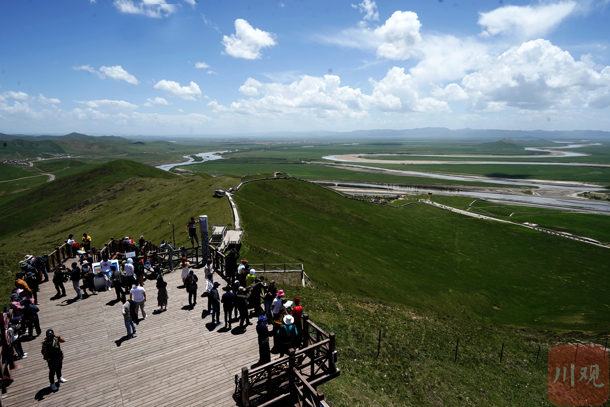 站在“若诗若画若尓盖”的九曲黄河第一湾观景台上,呈现眼前的更是壮美画卷。6月的川西草原风和日丽,也是各地游客们最喜欢的季节。