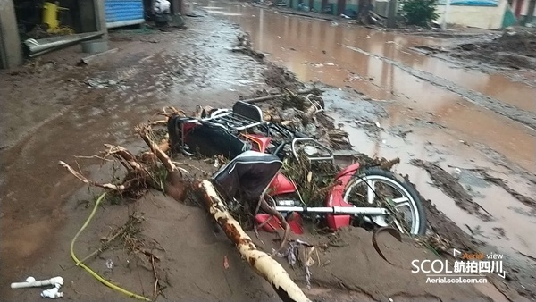 下午6点,记者终于进入到胜利乡,街道上的洪水已经退去,地面上一片狼藉,布满了树根和淤泥,还有被洪水冲倒的摩托车。胜利乡大部分居民已经转移至安全的地区,目前没有人员伤亡情况。截至记者回稿,辖区内5个村道路通讯仍中断。
