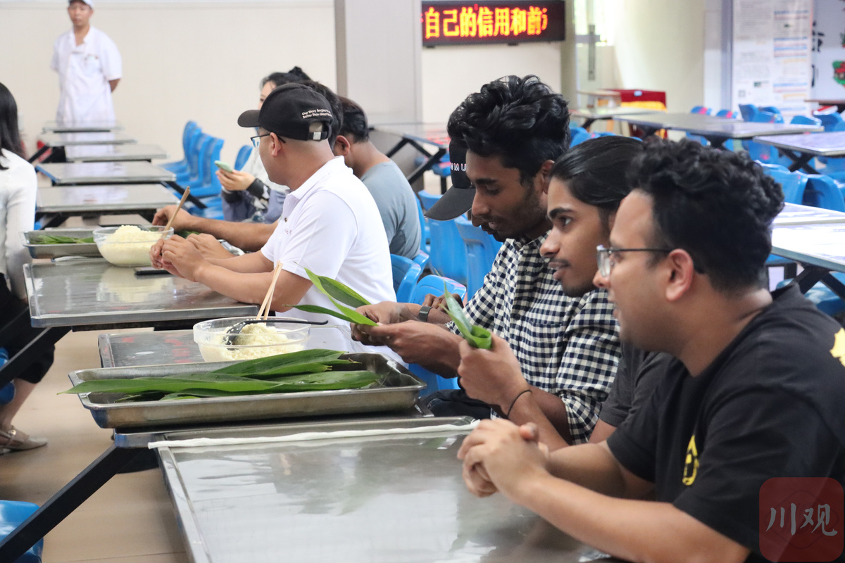 “我非常喜欢中国,喜欢中国传统文化,今天能亲自体验包粽子,非常开心!” 学生Bindu激动地说,“没想到小小的一片粽叶,包裹了糯米,能呈现如此美味。”