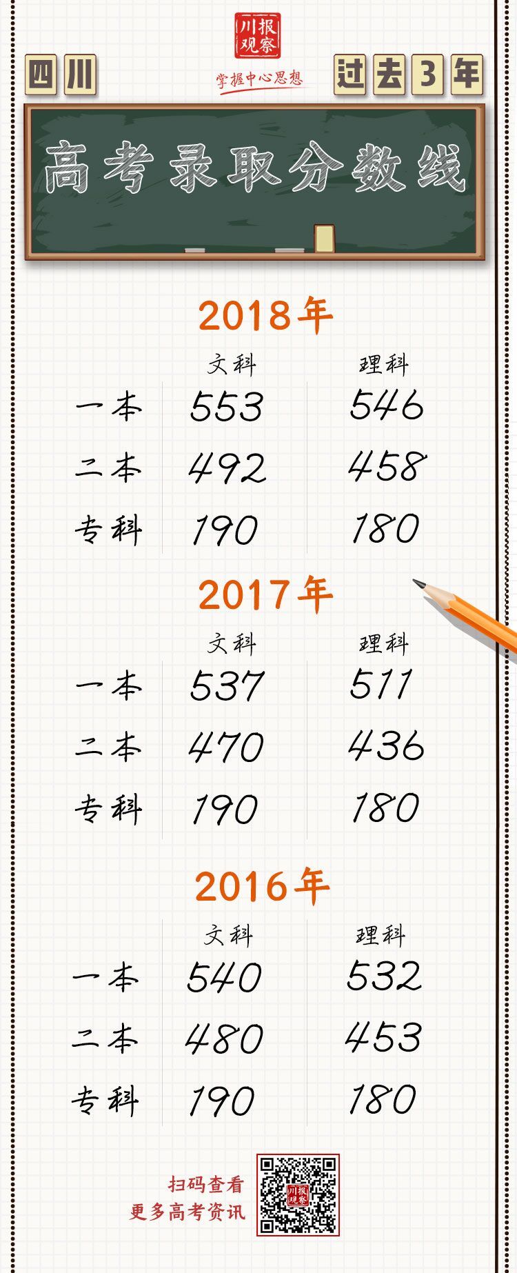 一图看清:四川过去3年高考录取分数线是多少?