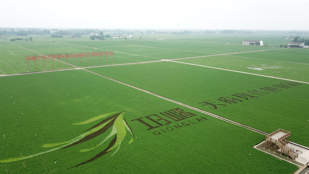 即便在6月,稻田里仍有游客前来观光。“你看,我们用水稻‘种’了一只凤凰。”黄光伦带记者登上观景台,俯瞰稻田,不同品种的稻谷呈现出深绿、浅绿、浅红的色彩,在田地里拼成了凤凰图案。