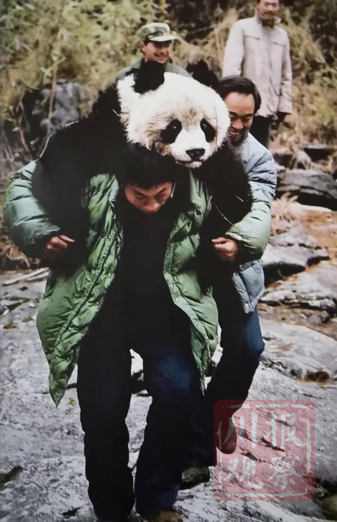 1984年7月23日,在宝兴县蜂桶寨乡发现一只患病大熊猫。拥有丰富经验的保护区工作人员王帮军带领五六名当地村民,趟过齐腰深、水流湍急的宝兴河,将大熊猫营救回保护区。高华康 摄
