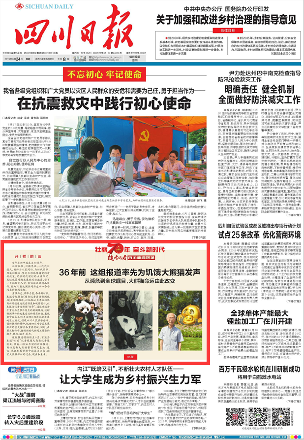 这组报道率先披露了大熊猫当年的生存状况,阐述了箭竹开花与大熊猫挨饿之间的关联度,激发了全省、全国乃至世界人民抢救和保护大熊猫的热情。这就是1983年7月7日起,在川报刊载的《竹子开花 忙坏专家》《“国宝”遭灾牵动万人心》等10多篇系列报道。