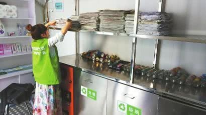 “每位把垃圾分类好送来的居民,将根据统一市场价格,按重量获得相应的积分。”回收馆的垃圾分类师赵晓娟介绍,积分达到一定额度时,居民就可以到管理员处兑换成现金或者牙膏、牙刷等日用品。“张大爷送来的垃圾有10公斤左右,大概可以获得1800个积分,按100积分换1块钱,能兑换18元现金物品。”