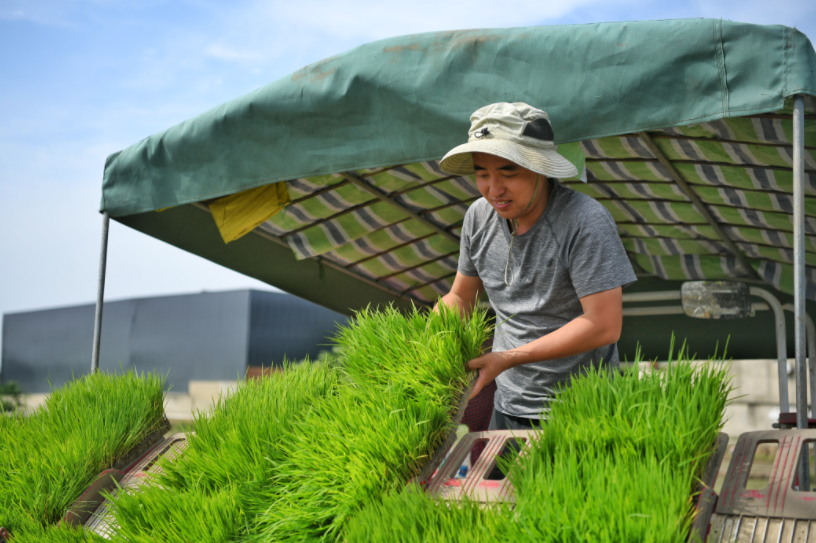“最近抢农时,早栽一天,一亩就可以多产几十斤粮食。”吴春站在田埂上向记者介绍,插秧机一天可以栽秧100亩,效率是人工的20倍左右。