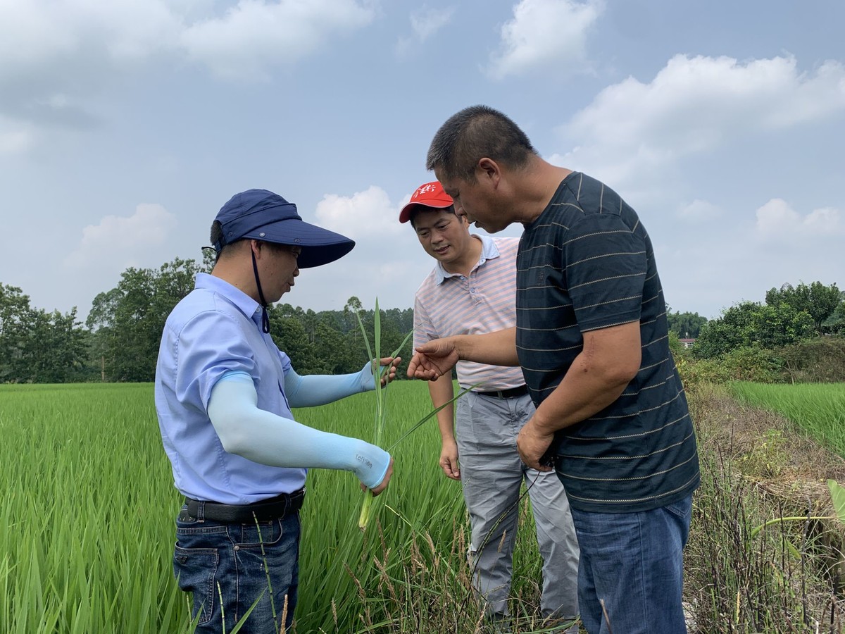 在夹江县,备受水稻倒伏问题困扰的,还有不少水稻种植大户、散户。任万军带领专家团队,实地走访了当地多家农场后发现,与其他地方大部分水稻种植户选择小麦、油菜为前茬作物不同,夹江县许多水稻种植户都选择中药材泽泻作为水稻前季作物,管理时施肥量大,田间残留肥料多,导致后季水稻长势过旺引发倒伏。针对这个问题,任万军团队来到田间地头,为种植户开出“水稻处方”。