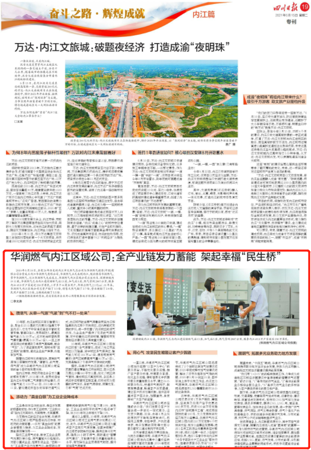 展望未来,“十四五”期间,华润燃气内江区域公司将持续服务地方经济社会发展,积极为内江市融入成渝地区双城经济圈建设提供能源保障。