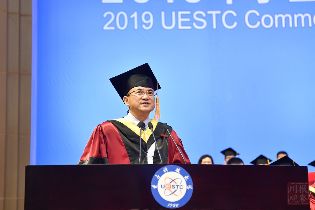 这个季节正是格桑花开、栀子花香,银杏墨绿、水杉葱茏的时节。当同学们穿着学位服在校园里四处合影,就意味着又到了说再见的时候。校园里既有幽幽的离愁别绪,更充满着依依不舍。许多同学在学校官方微博和微信留言:“如果时间重新来过,我还是会选择成电。”“希望我的母校可以是最耀眼、最棒的学校!”“走进,离开。但,一直爱你。”是的,少则3年、4年,多则7年、10年,同学们将最美的青春年华留在成电,也践行着“求实求真、大气大为”的校训精神,从懵懂少年成长为时代新人。2019届的4408名本科生、3755名研究生,于我而言也有着特别的意义,你们是我担任校长以来,送别的第一届毕业生,临别之际,我特别想送给同学们三句话。