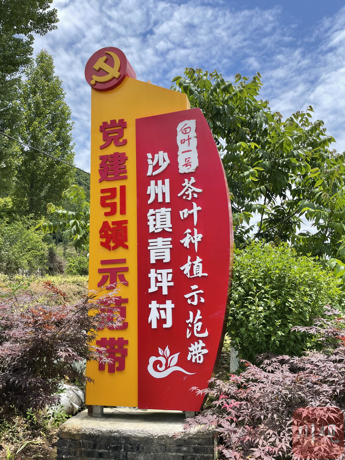 站在青坪村环山公路上,一眼就看到“吃水不忘挖井人,致富不忘党的恩”几个大字矗立在依山而建的白茶基地里。