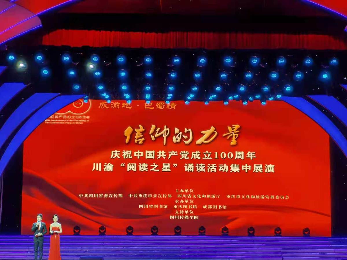 百年峥嵘岁月,一代又一代共产党人,在读书学习中汲取信仰的力量,又用行动留下一个又一个感人至深、催人奋进的故事。6月15日晚,“信仰的力量”——庆祝中国共产党成立100周年川渝“阅读之星”诵读活动集中展演(以下简称“展演”)在四川传媒学院拉开帷幕。经过层层选拔,川渝两地进入决赛的10个诵读组合选手,以“信仰的力量”为主题,共诵红色经典,深情回顾中国共产党波澜壮阔的百年历史,热情讴歌革命先烈可歌可泣的英雄事迹。