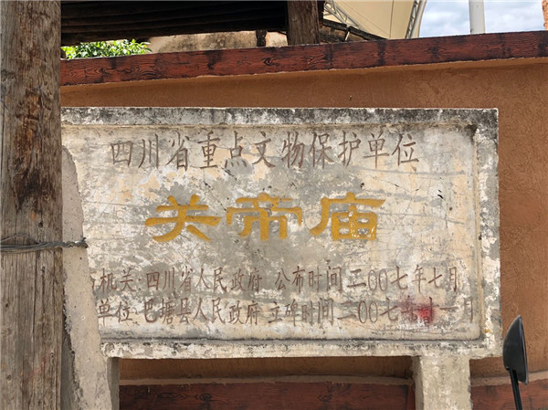 “2017年,巴塘下了一场大暴雨,关帝庙的大殿坍塌。”在这之前,经历各种自然灾害和人为因素的破坏后,关帝庙已经多次被损,年久失修的关帝庙只剩遗迹。2017年的大雨后,巴塘县在遗迹之上搭建钢棚,以防止残破庙宇再受损毁,等待进一步修复。