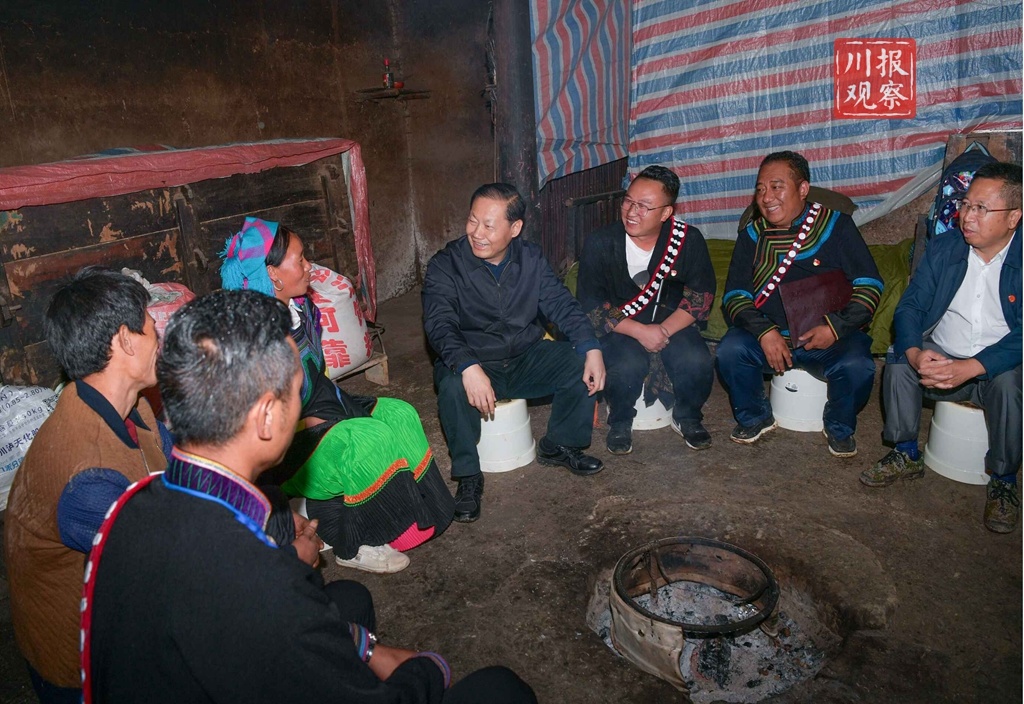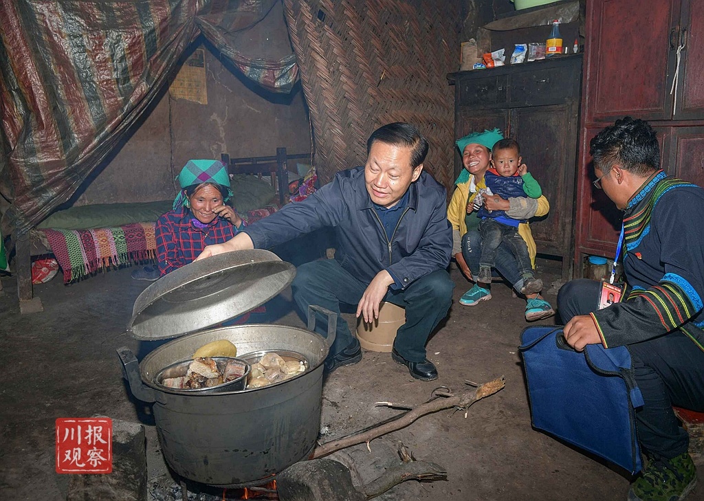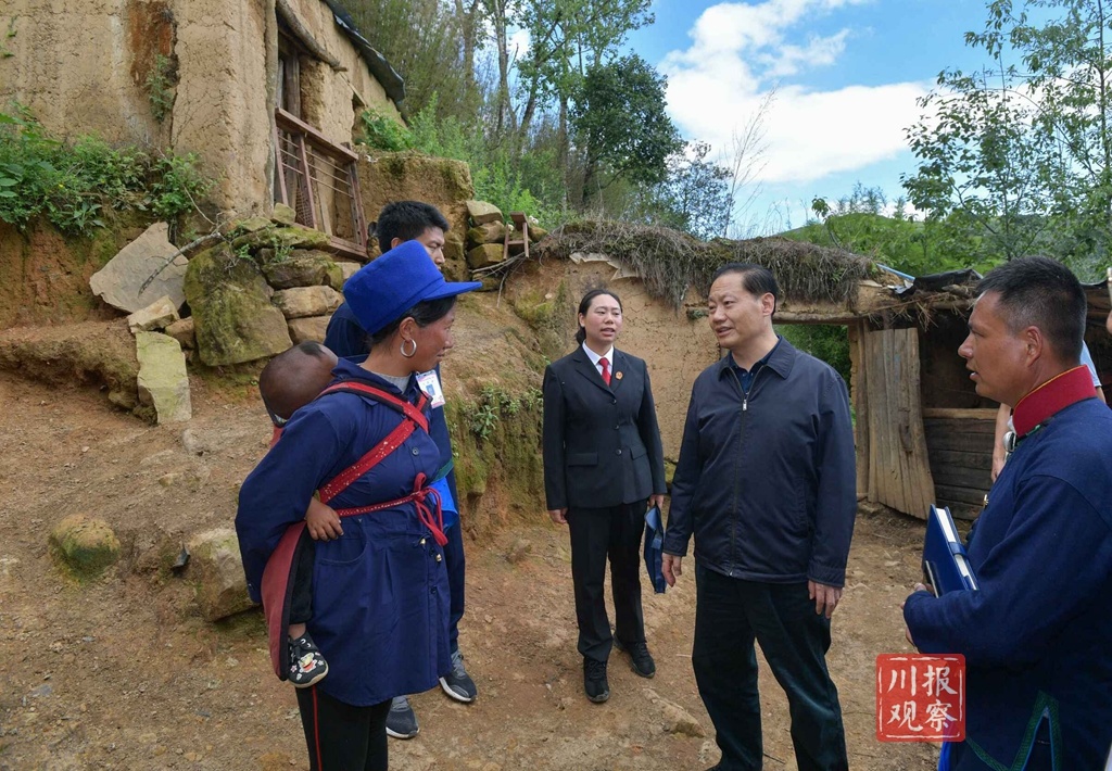 2019年6月28日,彭清华到凉山州金阳县丝窝乡洛古村调研,在贫困群众家中了解他们的生活情况。(川报观察记者 欧阳杰 摄)