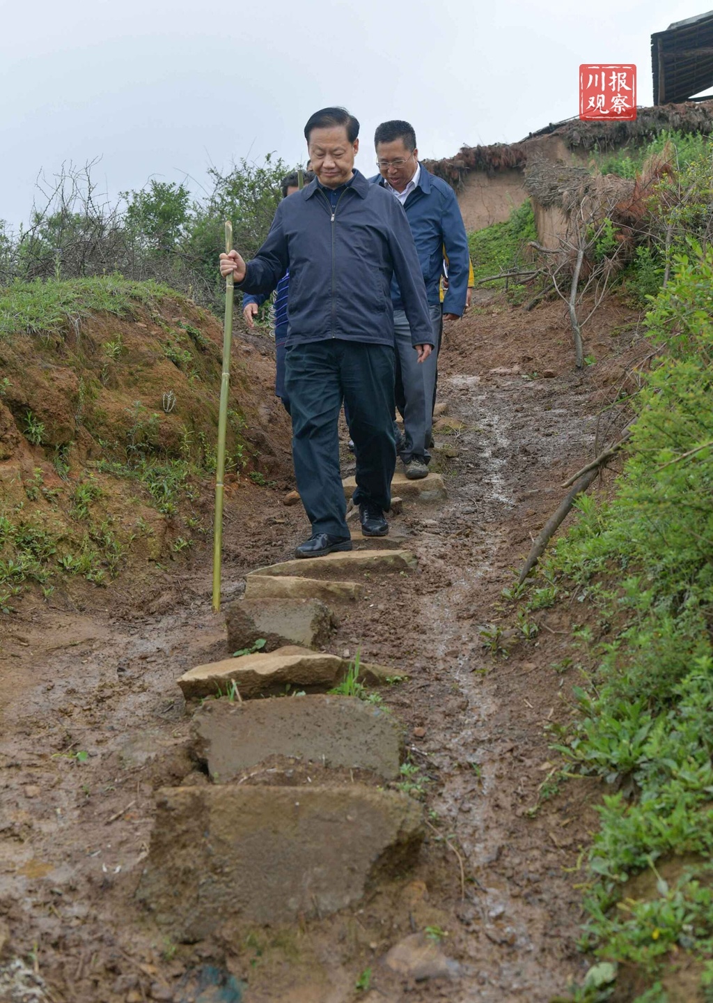 2019年6月28日,彭清华到凉山州金阳县丝窝乡洛古村调研深度贫困村脱贫攻坚工作推进情况。(川报观察记者 欧阳杰 摄)