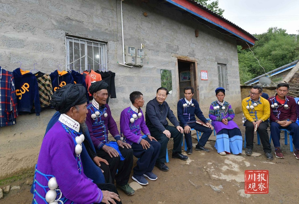 2019年6月27日,彭清华到凉山州布拖县九都乡奎久村调研,与贫困群众交谈,了解落实“两不愁三保障”等情况。(川报观察记者 欧阳杰 摄)