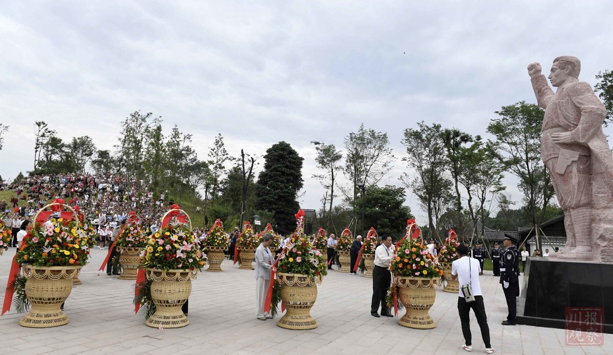 当日上午,在蓬溪县继勋公园,老一辈革命先辈先烈亲属代表、特邀嘉宾、省内外党史专家、蓬溪干部群众和学生代表等400余人,向旷继勋将军雕像敬献花篮并三鞠躬,深情缅怀旷继勋将军等革命先驱的光辉业绩和历史贡献。