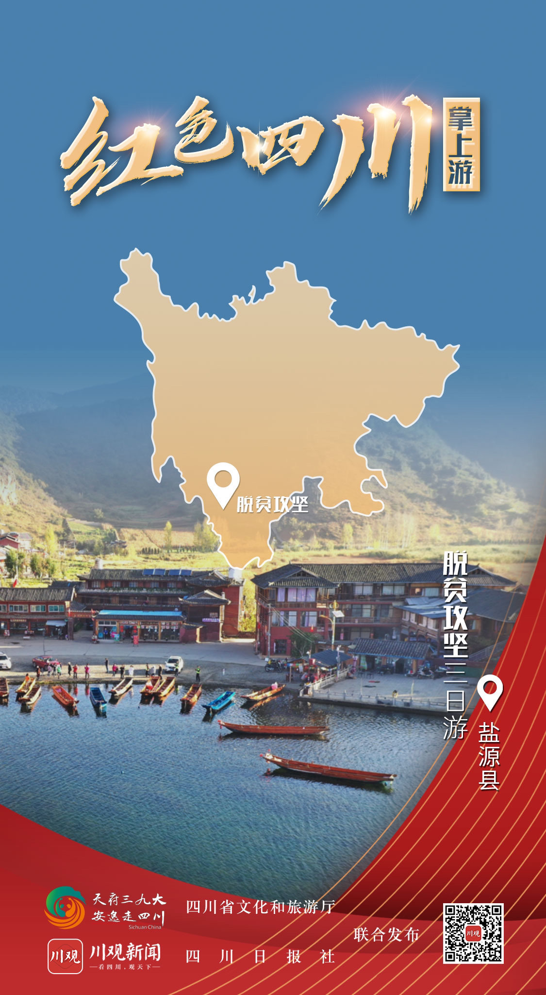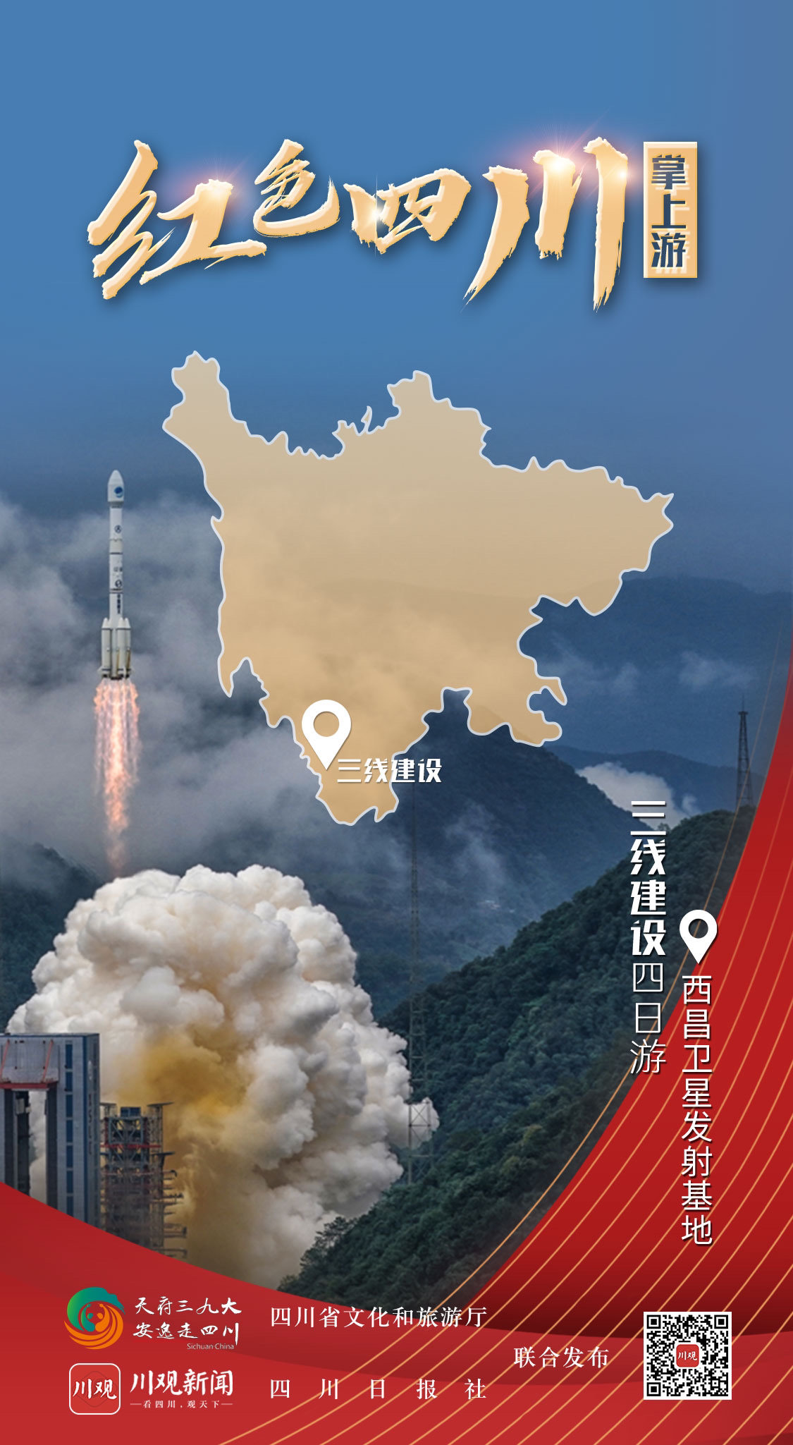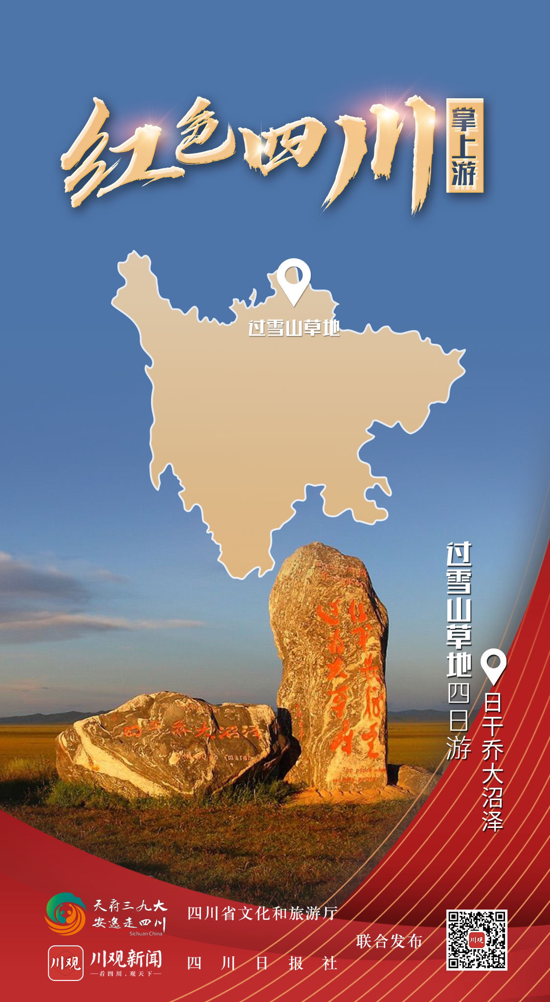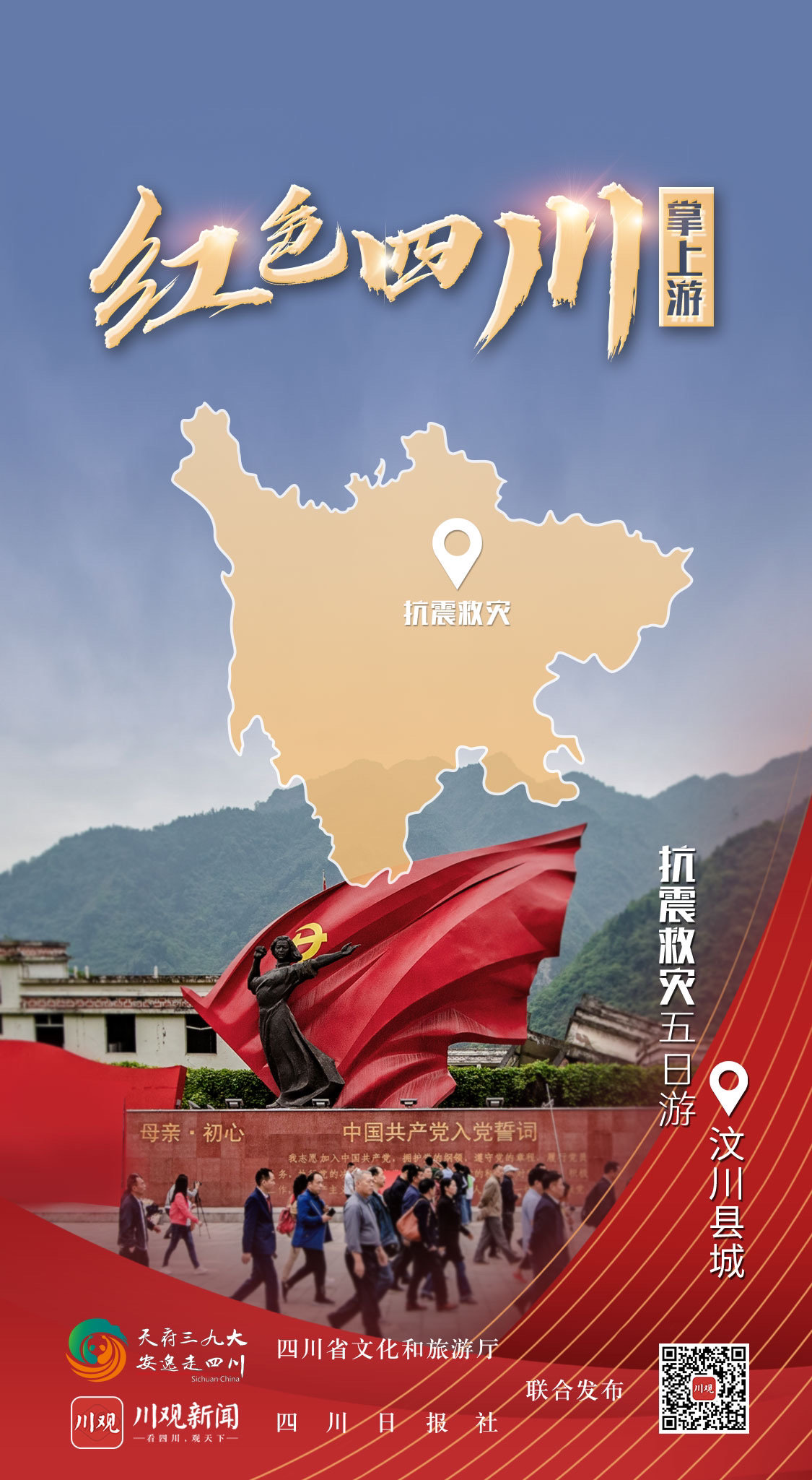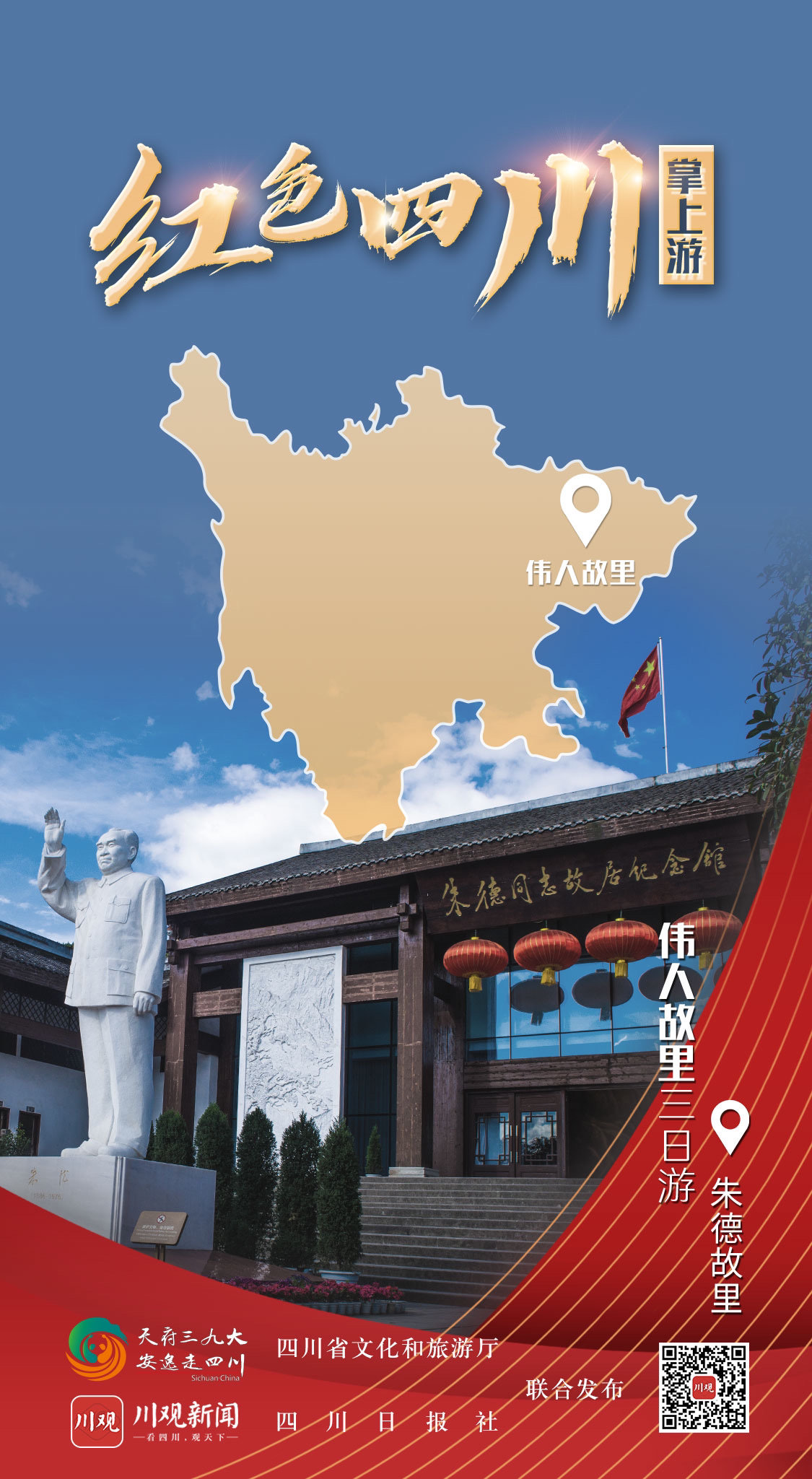 据了解,由四川省文化和旅游厅和四川日报社联合制作的“红色四川掌上游”全新交互式H5即将与广大网友见面,创意海报只是先上一道“前菜”。通过红色旅游创意海报,网友可通过交互式H5线上体验四川红色景区景点,收获不同类型的壮丽山河画卷,感受红军长征精神,还可扫描二维码进入四川日报·川观新闻客户端的“红色四川掌上游”专题,获取经典红色线路上的旅游亮点。