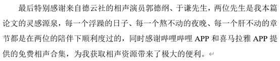 一个个陪伴同学赶论文的人,也出现在了他们的致谢辞中,例如同学、室友,当然还有耳机里、视频里的“声音”。