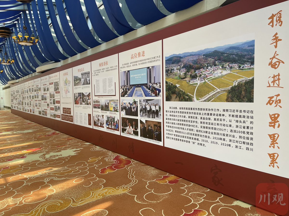 其中,5个展板从高位推进、倾情帮扶、特色亮点、再谱新篇等板块展示了省级层面的成果,另10个展板,是浙江对口帮扶市州的成果展示。