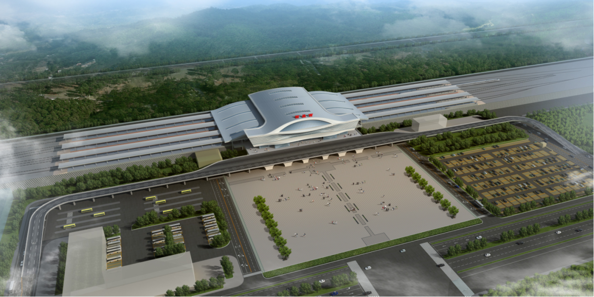 西昌西站是成昆铁路复线重要组成部分,是凉山州最大高铁站房,建筑面积15000平米,为三层框架结构高架站。项目设计理念为“海上生明月,琼楼瞻玉兔”,抽象邛海月升造型,形式新颖。