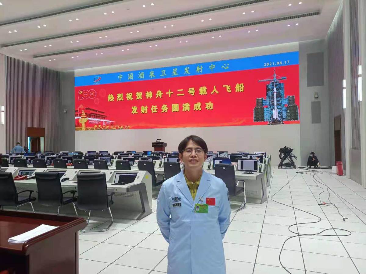 三十所第一事业部航天工程组组长谢永春在酒泉卫星发射中心现场保障。 受访者供图