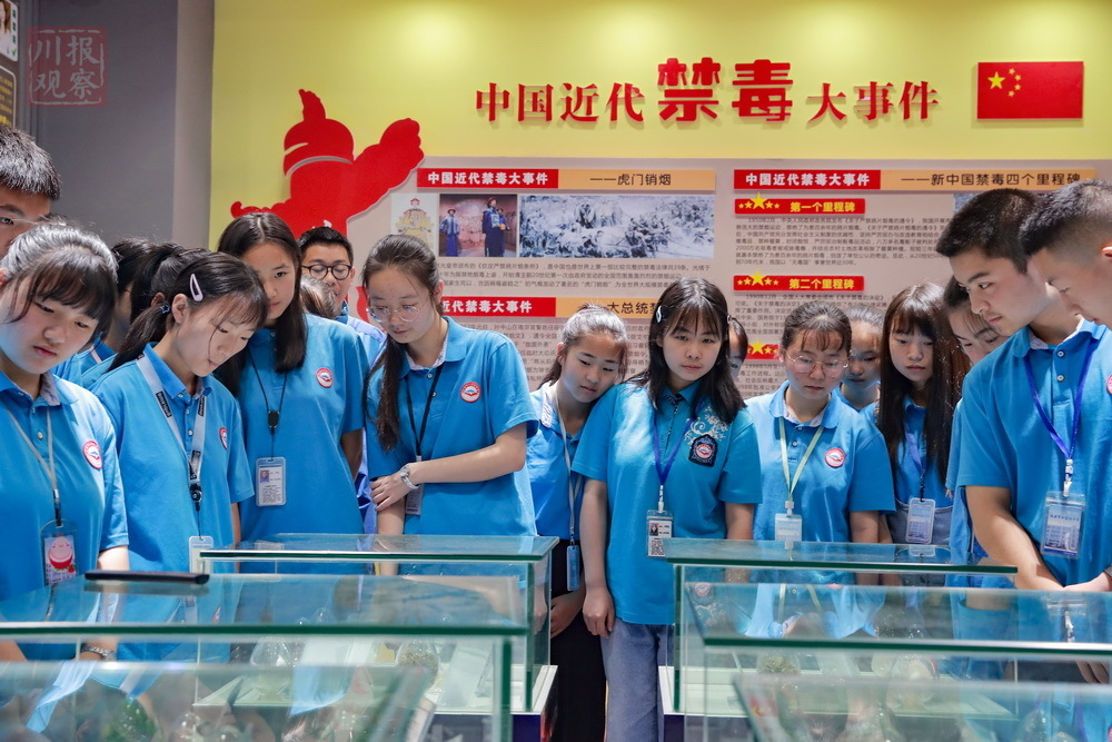 “毒品会毁坏家庭,威胁生命,我们要珍爱生命、远离毒品,坚决对毒品说不!”7月3日,在雅安市田家炳中学禁毒教育基地内,高一学生高祥程向记者分享了参观基地后的感言。而在基地陈列室内,以实物、图片等方式展现的冰毒、摇头丸、海洛因、K粉等毒品更是吸引了同学们的围观。