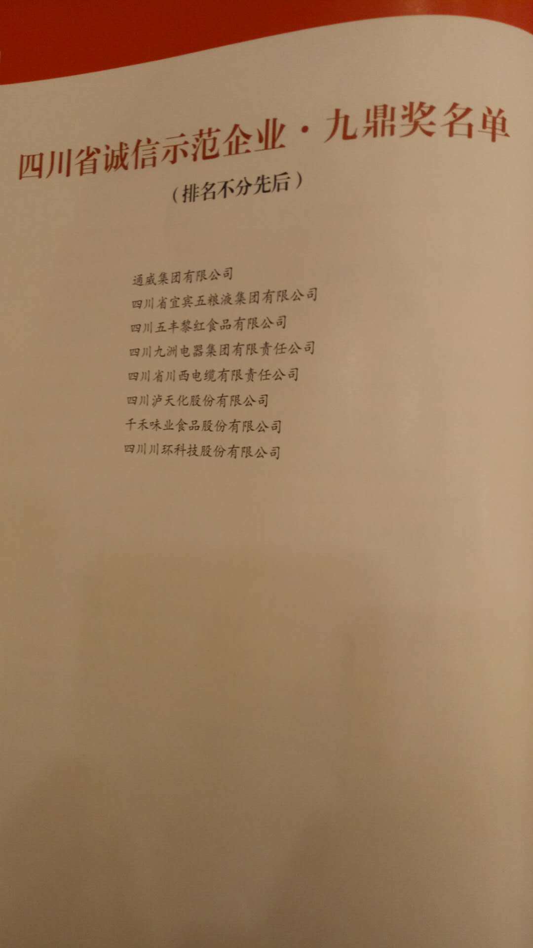 这是我省首次评选“四川省诚信示范企业”。在此基础上,主办方还按照经营规模、信用等级等,选出了8家表现特别突出的企业,授予“四川诚信示范企业九鼎奖”。四川省宜宾五粮液集团有限、通威集团有限公司等名列其中。