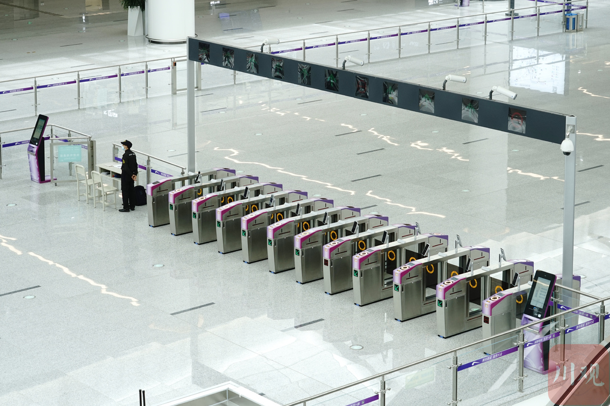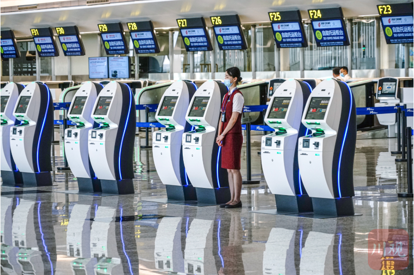 成都天府国际机场旅客安全检查现场配置了预安检闸机、自助验证闸机、毫米波安检门、智能安检线。